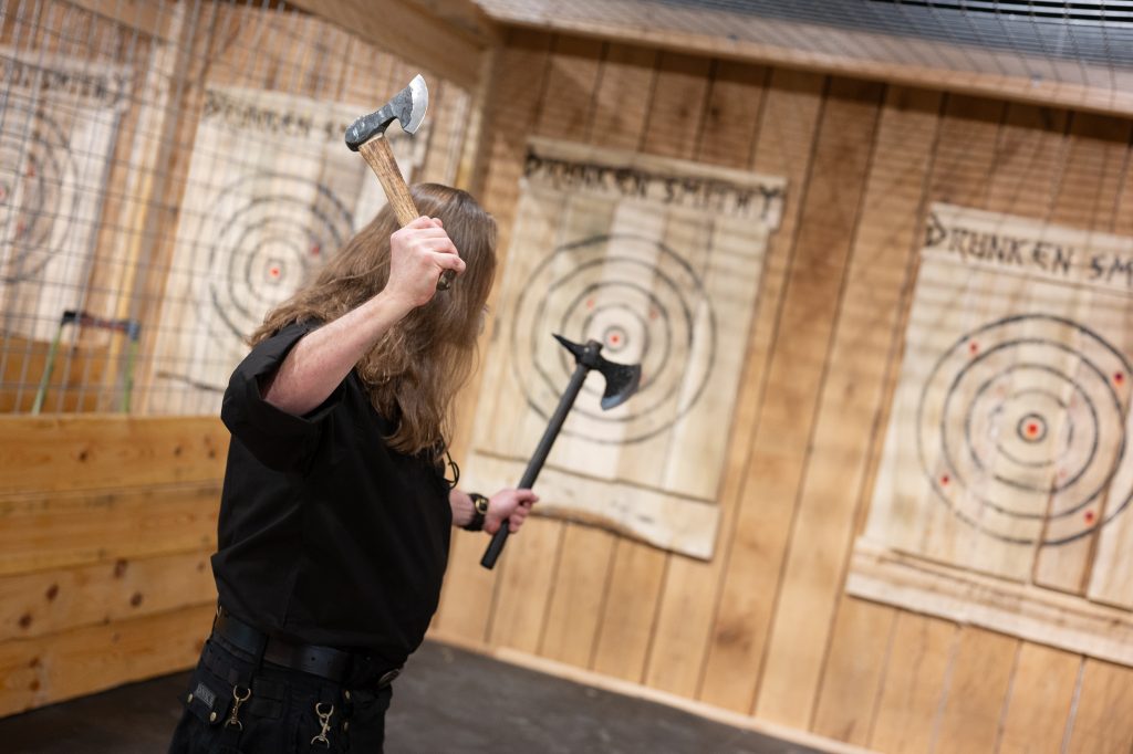 Ready to take your axe throwing skills to the next level? Drunken Smithy’s 7-week IATF Standard Single Hatchet Axe Throwing League is all about community, skill-building, and good times, all while having a little friendly competition! Whether you’re brand new to axe throwing or you’re a seasoned axe thrower, this league is for you. This competitive league is focused on supporting and uplifting one another all while hitting your personal goals.