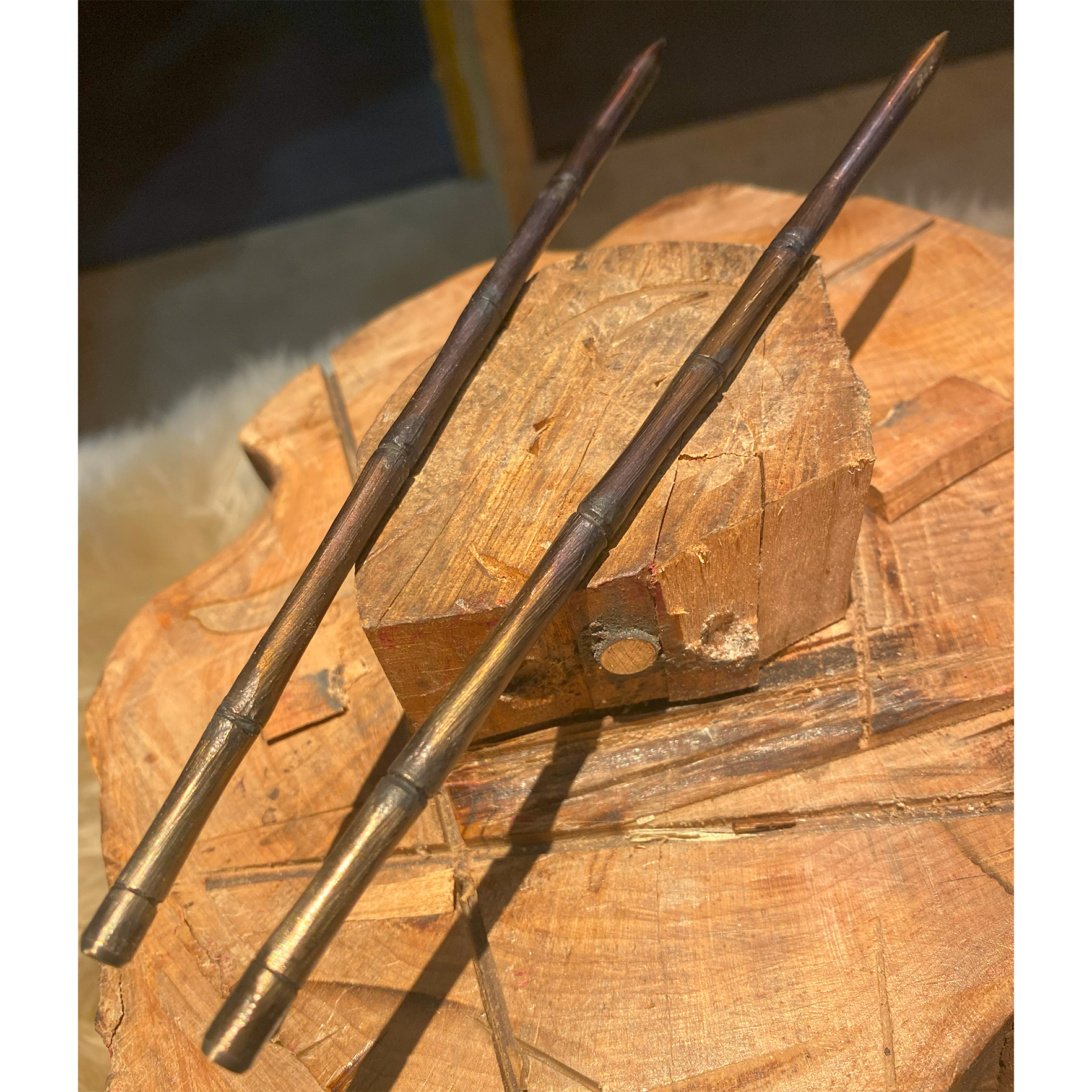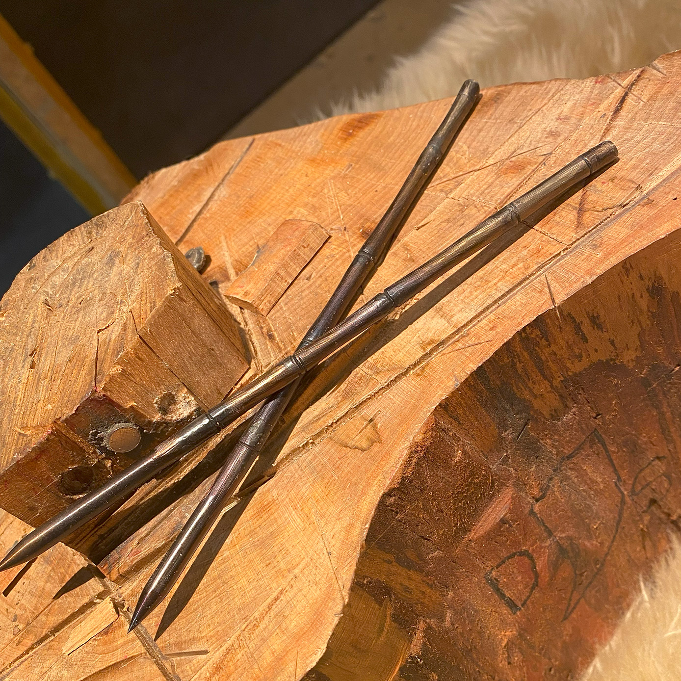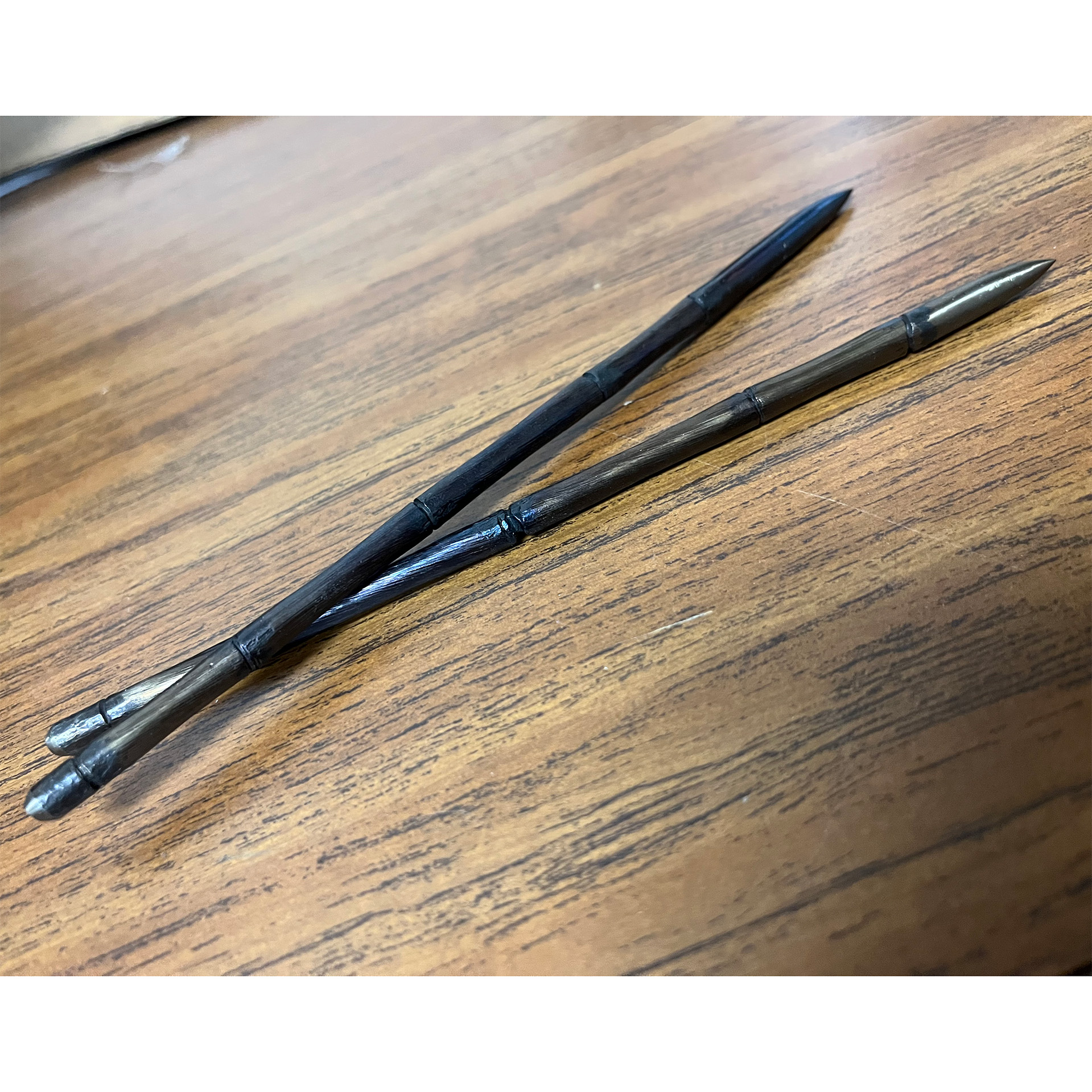 Handcrafted from durable steel, these elegant hair sticks come in your choice of finishes: beautifully blued or polished to a bright shine. Each accessory is approximately 8.5 inches long and weighs approximately 38 grams or 1.3 ounces. Each order includes two hair sticks.